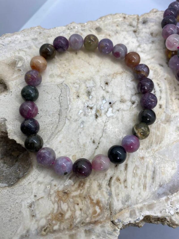 Bracelet boule Tourmaline Multicolore de perles de 8 mm de bonne qualité : A