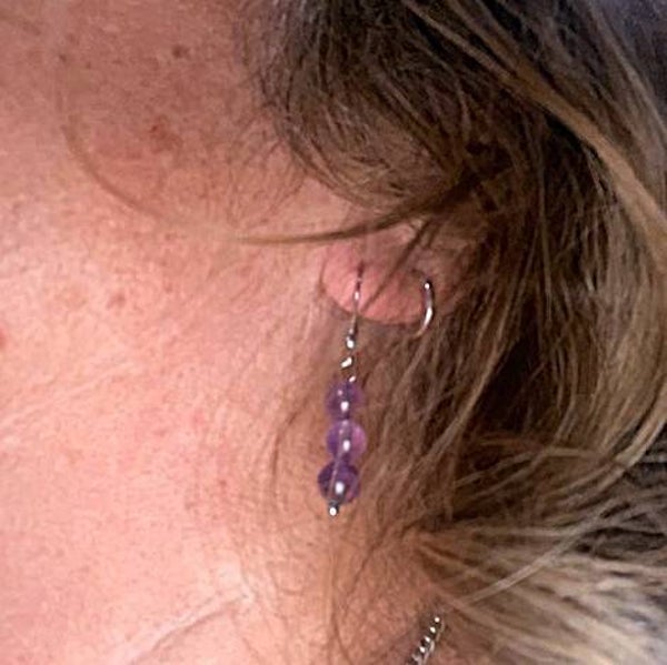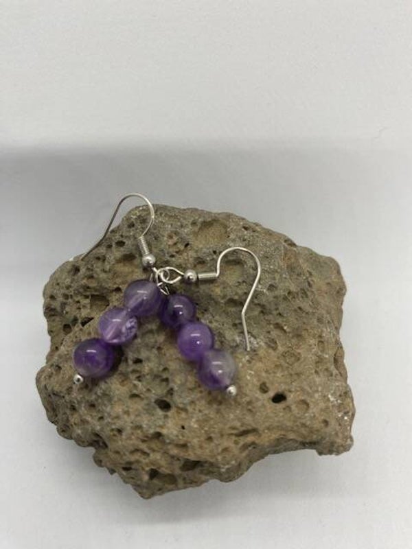 Boucle d'oreille d'Améthyste - pierre de bonne qualité : A - provenance : Brésil - perles de 6 mm (les perles étant fabriquées de façon artisanales leur taille peut varier de +/- 0.5mm ) - couleur : violet - Métal : acier inoxydable